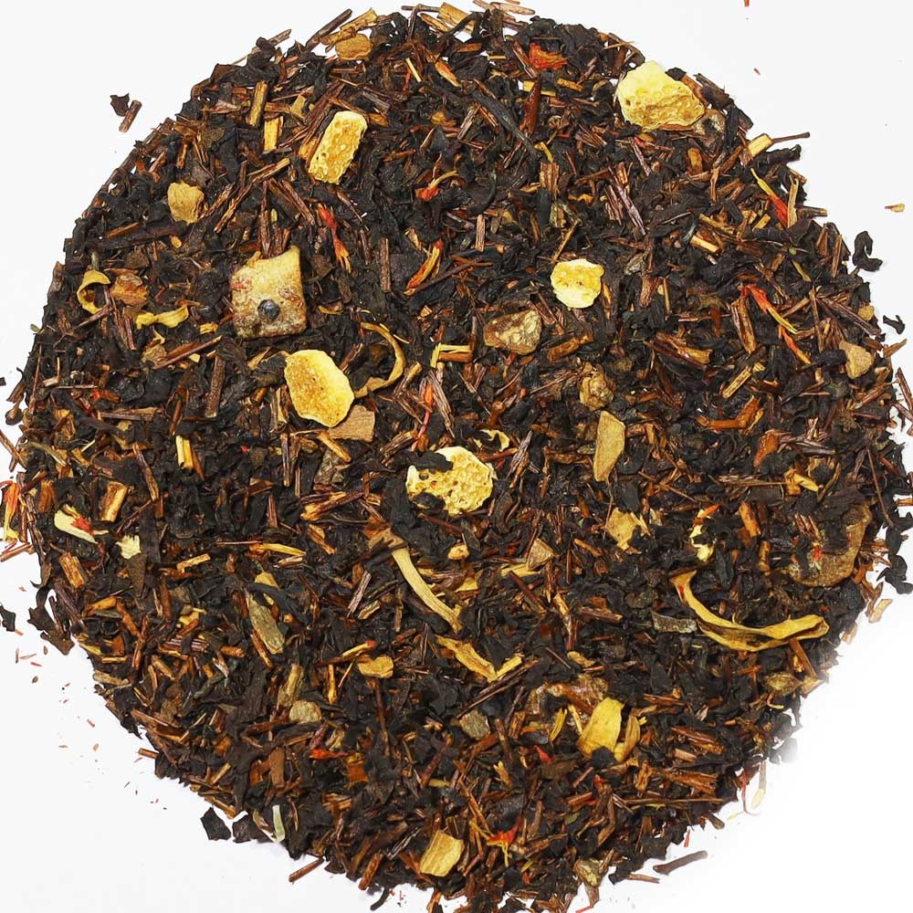 Zwarte thee, rooibos, dadel, kaneel, sinaasappelschil, sinaasappelbloesem, saffloerbloesem.